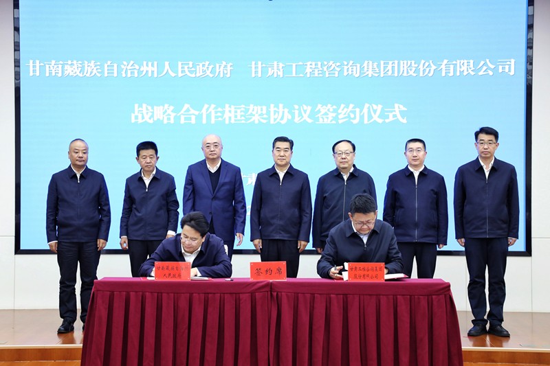 甘南州委常委、常务副州长杨光龙主持签约仪式,并与甘肃工程咨询集团总经理、董事陈一夫签订战略合作框架协议。甘肃工程咨询集团领导曹庆、白鑫、贾志坚出席并见证签约。